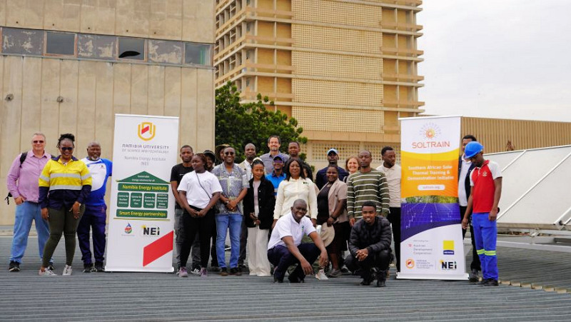 Technical and social issues were on the agenda at the SOLTRAIN+/IEA SHC Task 69 Joint Symposium held in Windhoek, Namibia, at the end of September. The first day focused on standards and certification training, while the second day centred on gender equality and women’s empowerment. The event was jointly organised by SOLTRAIN+ a regional initiative for capacity building and the demonstration of renewable heating and cooling and energy efficiency in the SADC region, the Namibian Energy Institute, and experts from Task 69 on Solar Hot Water for 2030 within the IEA Solar Heating and Cooling Programme. The photo shows symposium participants during a technical tour of the solar thermal installation at Katutura Hospital in Windhoek. The pumped system, featuring a 120 m² collector area from Austrian manufacturer Greenonetec, supplies hot water to the hospital’s maternity ward.